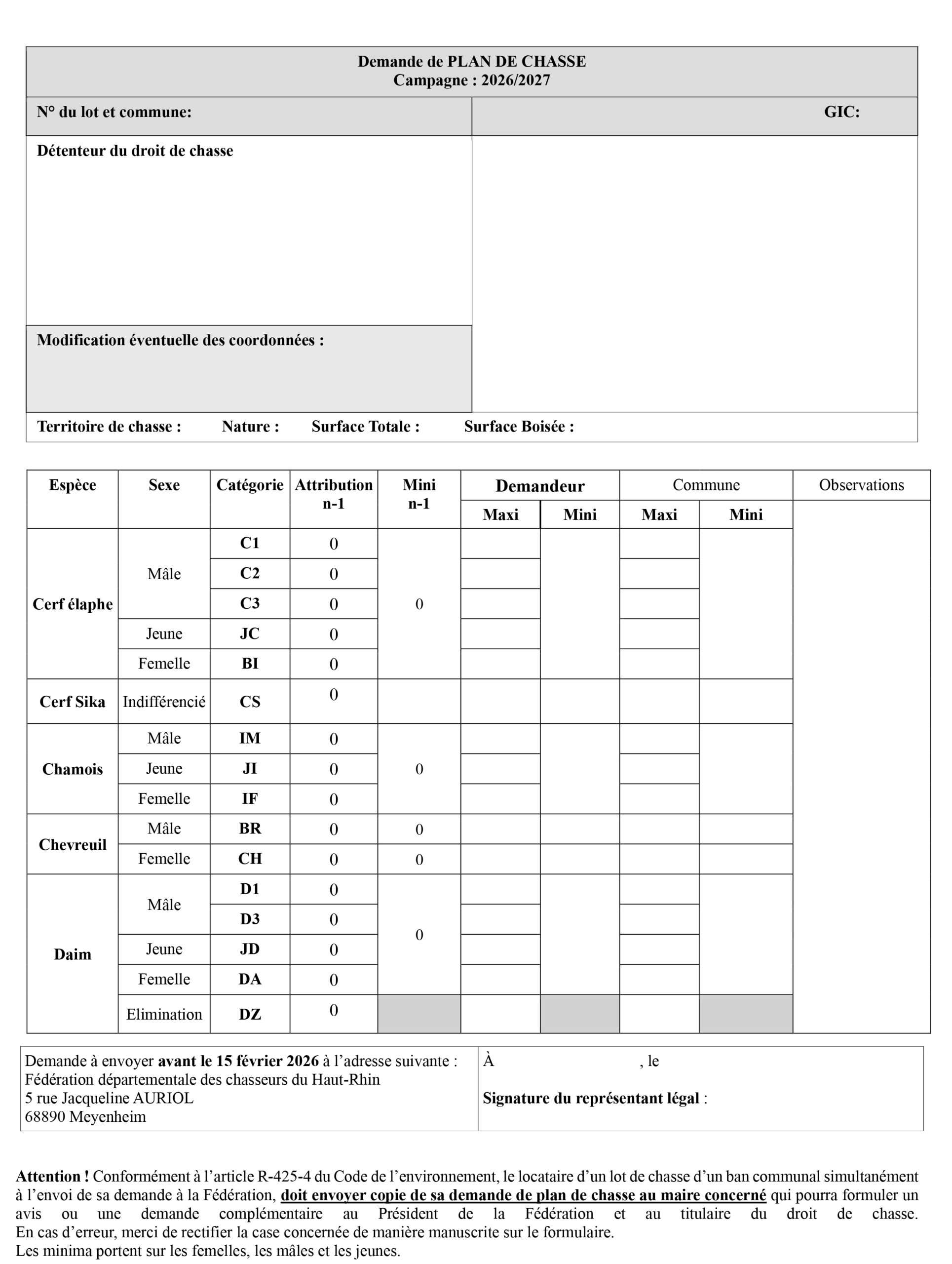 Demande de plan de chasse 2026/2027 sur le portail Chasse Connect Demande de plan de chasse 2026/2027 sur le portail Chasse Connect Publié le 20/01/2026 |